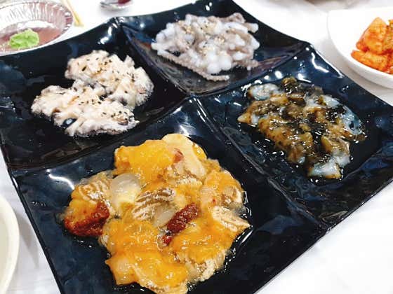 물회 외에도 해산물을 다양하게 즐길 수 있는 세트 메뉴 구성이 잘 갖춰져 있습니다. 특히 해물찜과 산낙지, 전복, 멍게 등은 한 상에 다양하게 포함되어 있어 여러 명이 방문할 때 특히 좋습니다. 산낙지는 미리 다져져 나와 먹기에 부담이 없고, 전복과 멍게는 손질 상태가 깔끔해 누구나 편하게 즐길 수 있습니다. 조개류와 가리비 역시 큼직하고 싱싱하며, 초장에 찍어 먹거나 그냥 먹어도 해산물 본연의 맛이 살아있습니다.