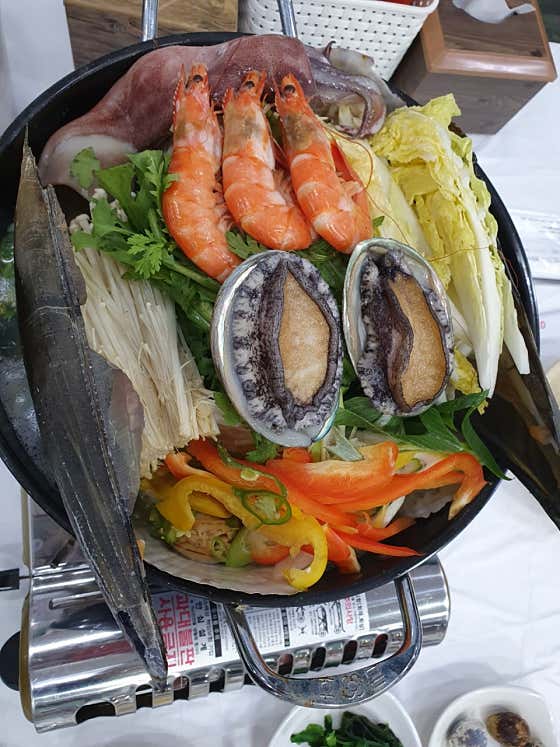 해산물 관리에 신경을 많이 쓴다는 점이 그대로 느껴지는 구성입니다. 조개는 껍질에서 쉽게 분리될 만큼 잘 익었고, 새우는 통통하면서도 특유의 은은한 단맛이 입안을 가득 채워줍니다. 해물찜은 낙지를 중심으로 전복, 새우, 가리비, 조개 등이 풍성하게 들어가 있어 이 한 가지 메뉴만으로도 바다의 풍미를 오롯이 느낄 수 있을 정도입니다. 직접 잡은 해산물을 사용하는 식당답게 신선함에 있어서만큼은 의심의 여지가 없으며, 손질 상태도 뛰어나 누구나 부담 없이 즐길 수 있습니다.