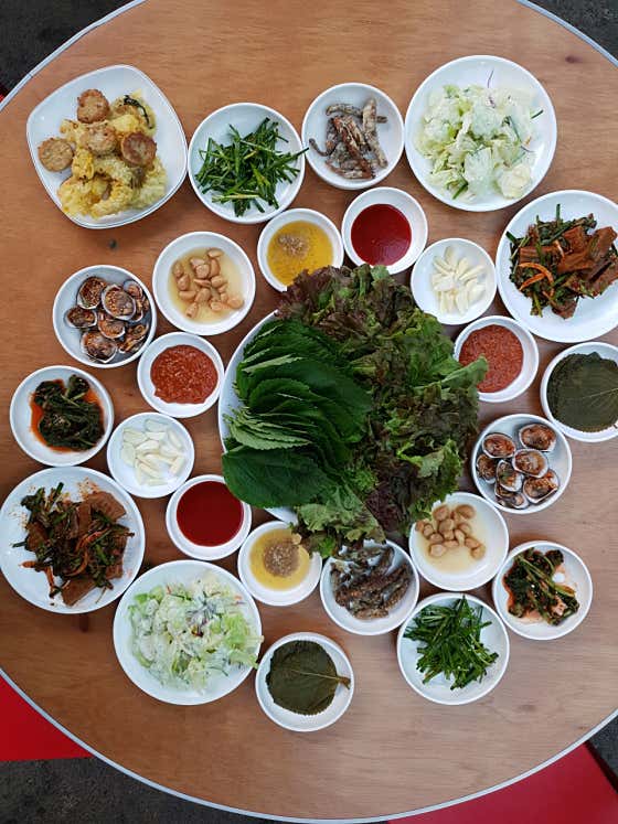 이곳의 또 하나의 매력은 친절한 직원들의 응대와 정성스러운 상차림입니다. 주문이 들어가면 이모님들이 직접 테이블을 돌며 솥뚜껑 위 조리를 도와주고, 익은 닭과 채소는 먹기 좋게 개별 그릇에 덜어주는 서비스도 함께 제공됩니다. 기본 반찬으로 제공되는 반찬들 역시 가지무침, 애호박, 나물류 등 자극적이지 않은 구성으로 정갈하게 나와 깔끔한 식사를 가능하게 합니다.