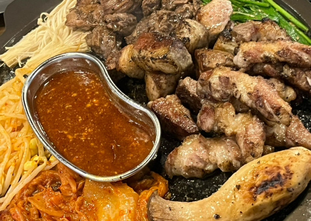 더블치즈가 듬뿍 들어간 계란찜은 어린아이들도 한 그릇 뚝딱 비워낼 만큼 부드럽고 진한 풍미를 자랑하며, 깡통 볶음밥은 불판에서 구워먹는 재미와 감칠맛을 동시에 느낄 수 있는 인기 메뉴입니다. 특히 볶음밥 위에 김치와 나물, 치즈가 어우러진 구성은 마치 옛 도시락을 연상시키며 먹는 재미를 더해줍니다. 고기를 다 먹은 후 돼지껍데기를 추가하면 마지막까지 씹는 즐거움을 이어갈 수 있고, 껍데기의 쫄깃함에 콩고물을 찍어 먹으면 마치 인절미처럼 부드럽고 고소한 맛이 입 안에 맴돌게 됩니다.