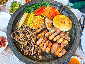 이곳의 대표 메뉴는 초벌로 준비된 한돈 삼겹살입니다. 불판에 올리면 금세 익는 이 삼겹살은 참나무 직화구이 특유의 향이 배어 있고, 겉은 바삭하면서 속은 촉촉한 식감이 특징입니다. 김치와 콩나물도 함께 구워 먹을 수 있어 식사의 조화가 잘 살아나는 메뉴입니다. 또한, 훈오빠 화끈한 주꾸미는 맵지만 중독성 있는 양념이 특징으로 매콤한 맛을 즐기는 분들에게 인기가 많습니다.