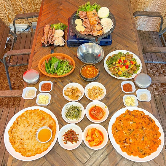 감자전은 겉이 바삭하고 속은 촉촉하게 구워져 전통 방식의 전 요리를 떠올리게 하며, 쭈꾸미는 매콤하지만 입에 착 감기는 맛으로 기억됩니다. 식사 후 마무리로 즐기는 라면 메뉴는 기대 이상이라는 평이 많고, 냉장고에서 직접 물을 꺼내 먹을 수 있는 점도 실용적이라는 의견이 많았습니다. 특히 반려견 동반 시에도 제약 없이 즐길 수 있어 애견 가족 단골층이 많은 것이 특징입니다.